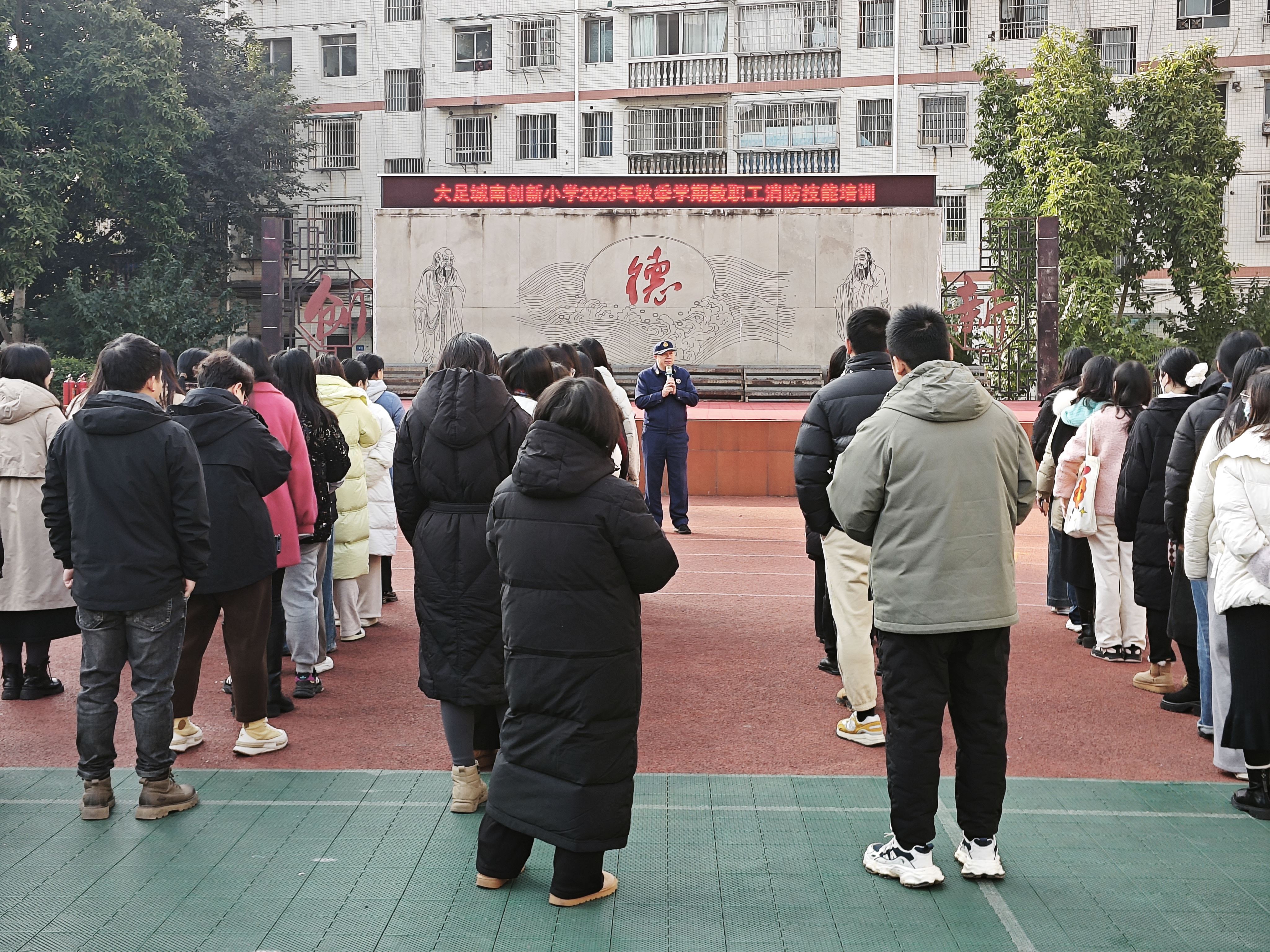 23019 次浏览 11-2611月25日,重庆市大足区消防救援局走进辖区城南创新小学,面向全校100余名教职员工开展了一场内容丰富、注重实效的消防安全宣传活动,旨在进一步提升校园消防安全管理水平,增强教职工风险防范意识和自救互救