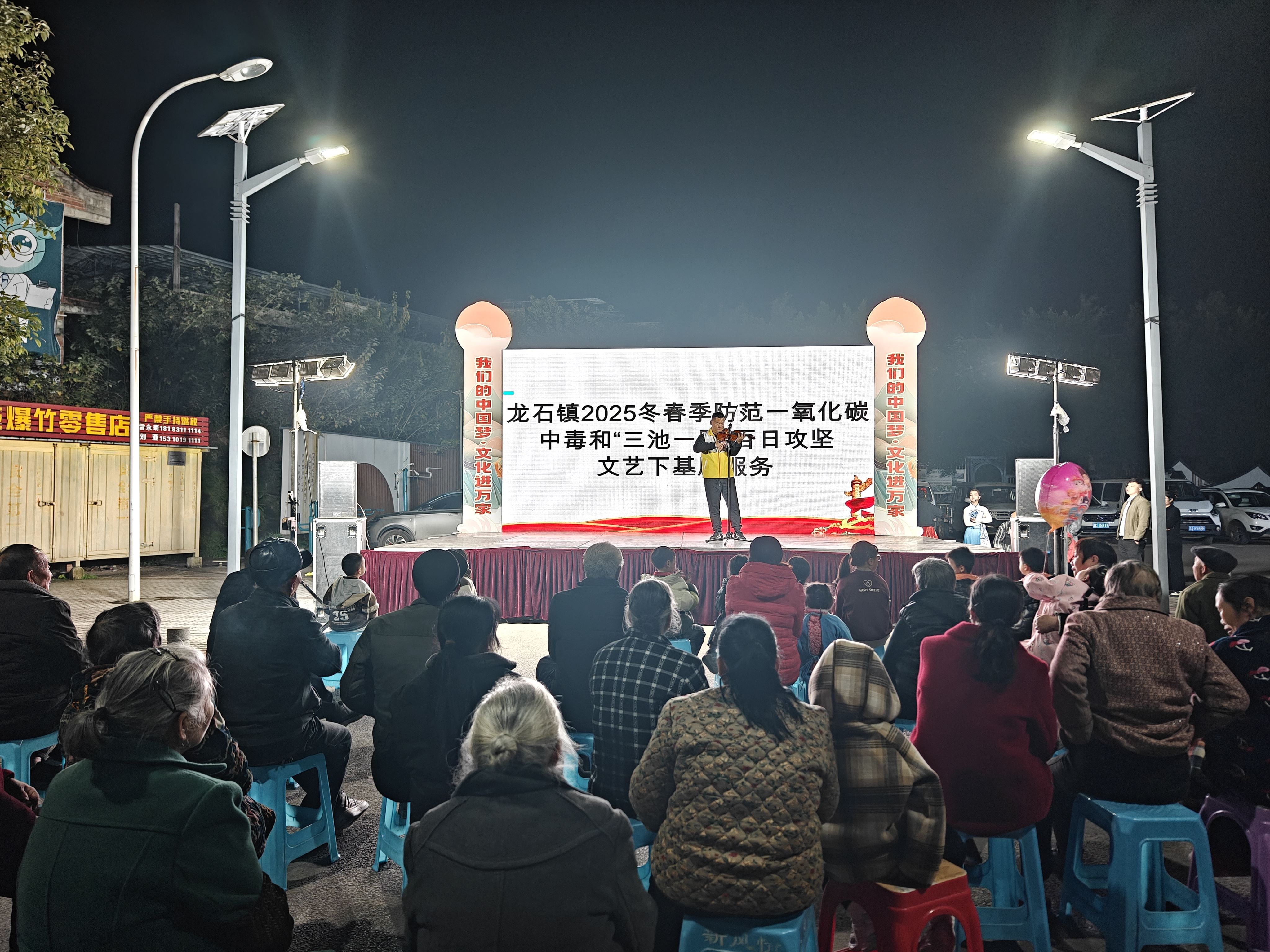 13819 次浏览 11-2411月21日晚,龙石镇文化广场灯火璀璨,一场以"平安护航暖民心 生态治理惠民生"为主题的冬季安全宣传文艺汇演隆重举行。此次活动创新宣传形式,将防范一氧化碳中毒与"三池一网"整治工作深度融合,通过群众喜