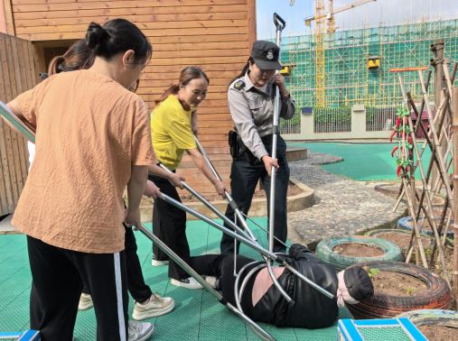 16488 次浏览 10-17为进一步加强师生面对突发恐怖事件的防范意识,提高应急处置能力,10月16日,宝顶幼儿园开展了一场紧张有序的反恐防暴应急演练。 当天下午3时许,演练正式开始。一名“歹徒”冒充家长,当保安依照规定程序对其