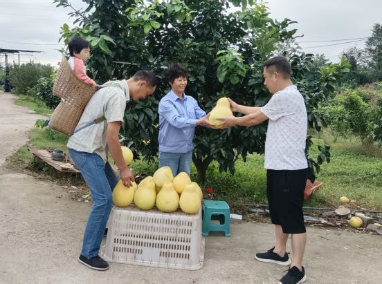 14156 次浏览 10-14近日,石马镇人大代表、红灯社区党支部书记谢荣发来到红灯社区五组红心蜜柚种植基地,为果农胡道会一家喜获丰收的红心蜜柚再一次拓宽销售渠道“出谋划策”。 活动现场,谢荣发正在为前来购买红心蜜柚的爷孙俩挑选